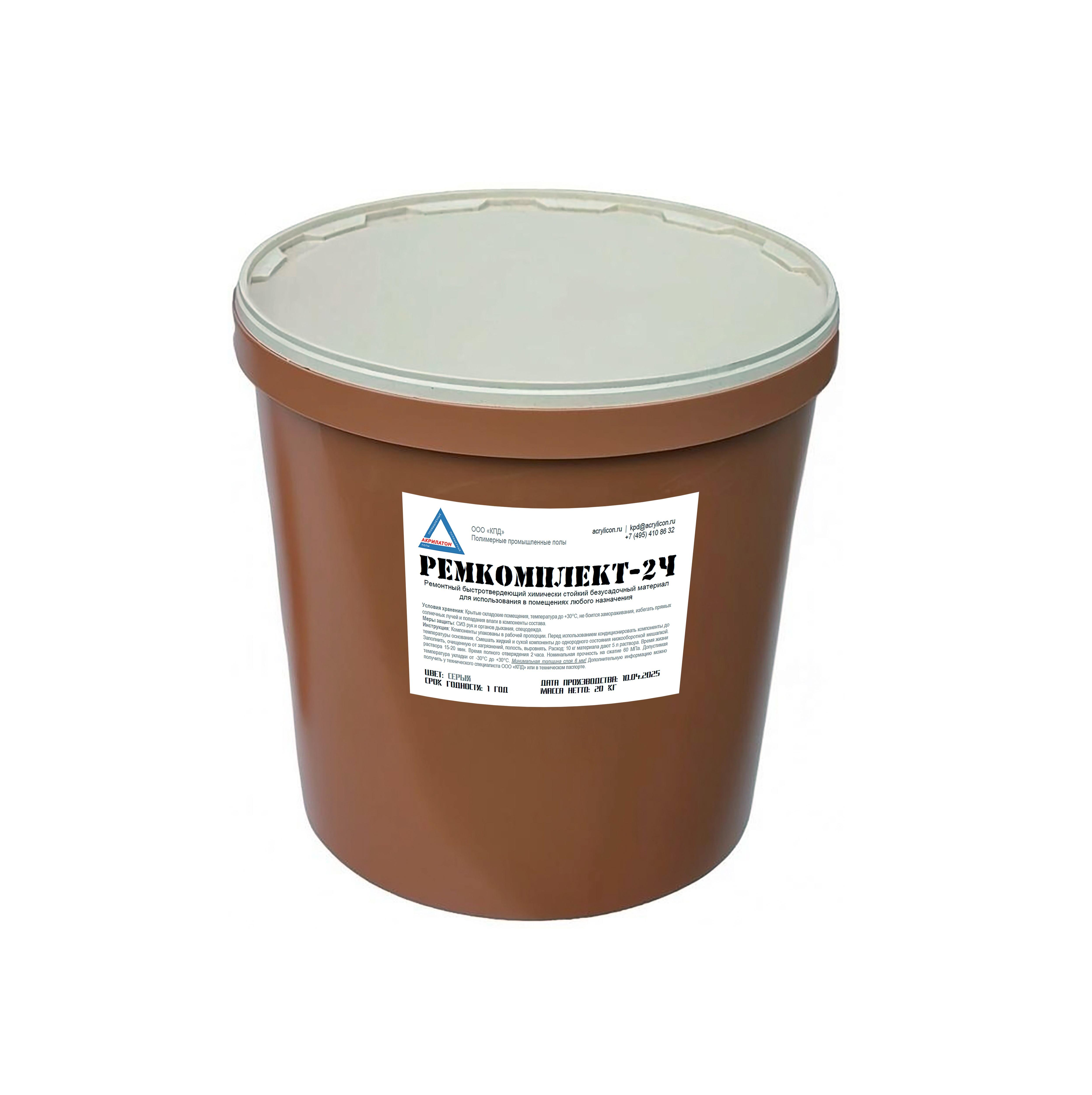 Материал для быстрого ремонта глубоких повреждений полов "Акрилатон Ремкомплект-2ч". Двухкомпонентный ремонтный набор для быстрого восстановления бетонных, полимерных и плиточных полов при температурах до –5 °C. Ключевые преимущества: отверждается за 2 часа; прочность на сжатие — более 60 Н/мм² (в 2 раза выше, чем у стандартного бетона); выдерживает тяжёлые механические и химические нагрузки; подходит для помещений с высокими гигиеническими требованиями (пищевая, фармацевтическая промышленность); можно использовать внутри и снаружи помещений; простой замес и нанесение (ведро служит ёмкостью для смешивания); цвет — серый (под бетон). Основные параметры: прочность на изгиб: 20 Н/мм²; адгезия к бетону: > 2,0 МПа; теплостойкость: до 60 °C; минимальная толщина слоя: 6 мм; время жизни смеси: 10–20 минут. Комплектация: 2 комплекта в ведре (20 кг смеси). Соответствует: ГОСТ Р 58895‑2020 (экспертное заключение № 001191 от 13.07.2022).